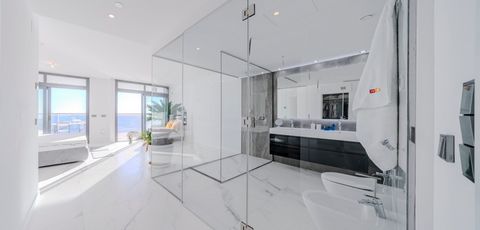 Una característica destacada de esta residencia es la amplia terraza privada, donde un jacuzzi privado lo invita a relajarse mientras disfruta de las vistas frontales ininterrumpidas del mar. Este espacio al aire libre ofrece el entorno perfecto para relajarse y disfrutar del impresionante paisaje costero.