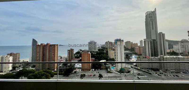 Complejo de 196 apartamentos en Benidorm en Playa de Poniente. Urbanización con pistas de pádel, tenis, parque infantil, piscina comunitaria abierta a al aire libre con cafetería y piscina climatizada en planta alta en interior del edificio con gimnasio y sauna con unas vistas panorámicas al mar.