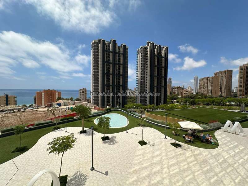 Apartamento en Benidorm zona Poniente, 65 m. de superficie, 10 m2 de terraza, 50 m. de la playa, una habitación doble, un baño, propiedad nueva, cocina equipada.