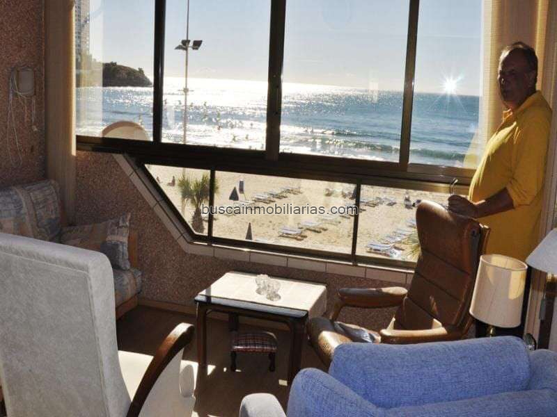 El piso está ubicado en Benidorm (ALICANTE). Tiene una superficie total de 83 m2. Está dentro de la población. Dispone de vistas al mar y libres. La topografía del terreno es plana. El piso dispone de dos dormitorios. Tiene un salón. Tiene muebles. Tiene lavadora, secadora, lavavajillas, microondas, horno, frigorífico, congelador y galeria. El equipamiento general consta de aire acondicionado. Tiene un garaje. Además está en primera línea de playa.