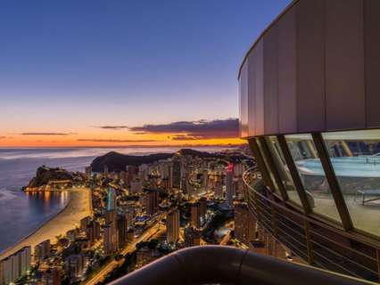 Descubra una oportunidad única de vivir o invertir en uno de los pisos más destacados del emblemático edificio Intempo en la playa de Ponente de Benidorm.Con 95m² de superficie útil (de los cuales 130m² están ocupados por las zonas de estar, incluyendo las zonas comunes), este piso ha sido meticulosamente reformado y acabado al más alto nivel.La distribución comprende dos amplios dormitorios, uno principal con baño en suite y vistas directas al mar Mediterráneo y otro con vistas a las majestuosas montañas, así como un salón-comedor con cocina americana que se abre a una terraza privada de 23m² con vistas panorámicas al mar y al skyline de Benidorm.La cocina está totalmente equipada con electrodomésticos modernos, con encimeras sólidas. Los dormitorios tienen armarios empotrados y el confort está asegurado todo el año con doble acristalamiento, aire acondicionado individual y bomba de calor de bajo consumo.El piso se vende completamente listo para entrar a vivir, incluyendo una plaza de aparcamiento subterráneo y un trastero.Los residentes de Intempo pueden disfrutar de más de 6500 m² de zonas comunes exclusivas que incluyen:- El Club en la planta 46 con bañera de hidromasaje infinita, gimnasio panorámico, salas de masaje y sauna.- Terraza en la planta 47 con espectaculares vistas a la bahía.- Piscinas, jardines, restaurante privado, zona infantil, spa, Fresh Bar y sky bar.- Wi-Fi universal en todo el edificio, moderno sistema de seguridad, 8 ascensores de alta velocidad.