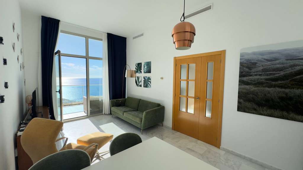 La vivienda cuenta con 85 m² construidos. Dispone de una habitación y un baño, se encuentra en buen estado y cuenta con armarios empotrados. Los ventanales panorámicos, los techos de 3,5 metros de altura y la terraza ofrecen vistas abiertas al mar y a la ciudad. Con orientación hacia el sur.