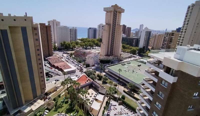 Apartamento a la venta, en zona de Levante, tiene 1 dormitorio, 1 baño, cocina independiente, Suelo de gres porcelánico, Aire acondicionado por conductos, ventilador de techo. Planta 15, de esquina. Excelentes vistas al mar y a la montaña. Reformado, para entrar a vivir. Urbanización con parking comunitario, piscina y pista de tenis. Edificio en buen estado. Dispone de 2 ascensores muy amplios. Cámaras de vigilancia. Cerca de todos los servicios. La playa Levante esta a unos 200 metros.