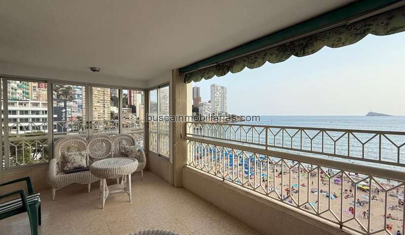 Descubra este espectacular piso ubicado en una inmejorable localización, a pie de la famosa Playa Levante. Con un generoso espacio construido de 160 m2, esta propiedad cuenta con tres amplios dormitorios y dos baños completos, siendo el dormitorio principal tipo suite para mayor privacidad y confort. Disfrute del sol mediterráneo desde su extensa terraza esquineras que ofrece vistas panorámicas al mar y al vibrante paseo marítimo de Benidorm. El salón-comedor es ideal para relajarse o entretenerse mientras contempla el paisaje costero. La cocina está completamente equipada e incluye una galería tendedero funcional que maximiza el uso del espacio disponible. Este atractivo inmueble se complementa con acceso a un garaje comunitario dentro de una hermosa urbanización dotada con piscina refrescante y solárium donde podrá disfrutar momentos inolvidables bajo el sol español; además hay hamacas disponibles para su comodidad personalizada durante los días soleados. Su ubicación privilegiada le permitirá acceder fácilmente a todos los servicios necesarios: restaurantes, tiendas y actividades recreativas sin necesidad de desplazamientos largos.
