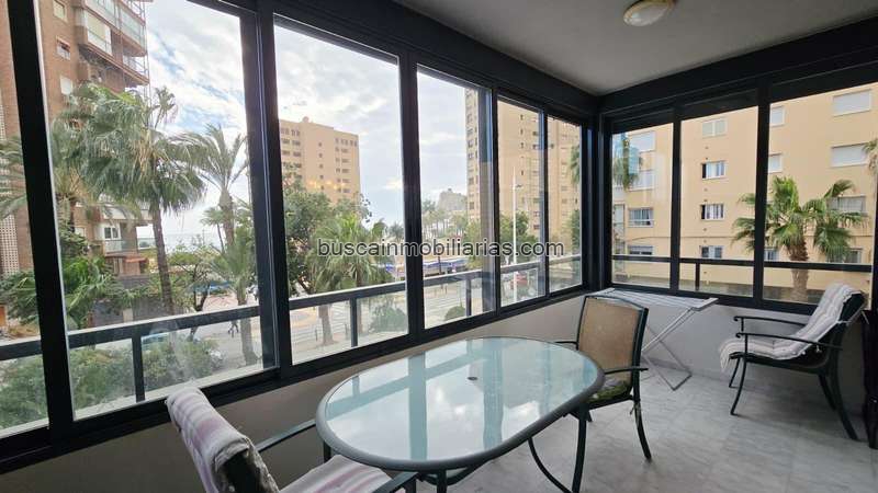 La vivienda de unos 60 metros cuadrados y en buen estado cuenta con 2 dormitorios, un cuarto de baño completo con bañera, salón-comedor con acceso a una terraza acristalada con unas vistas al mar, y una cocina independiente. Además, incluida en el precio viene una plaza de garaje privada lo que es muy importante en una zona donde pocos sitios hay para dejar el coche. La urbanización tiene una bonita piscina comunitaria.