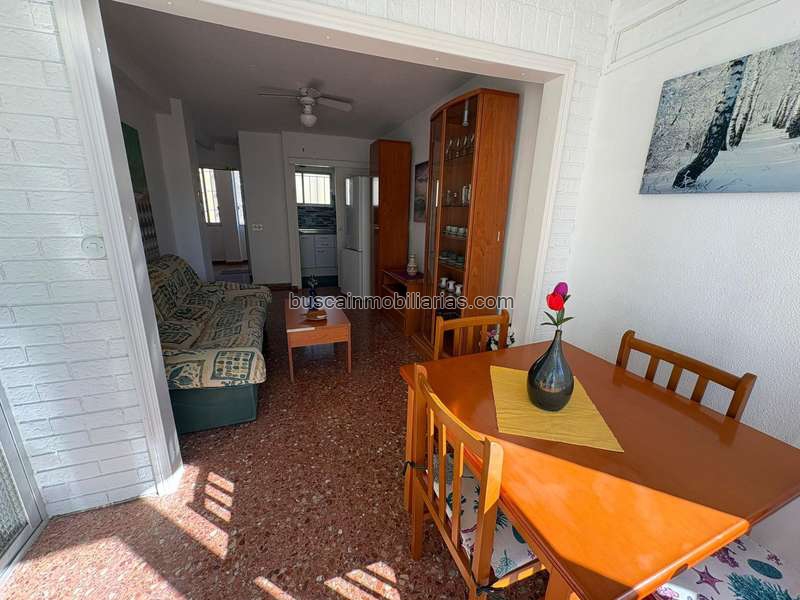 La distribución de la vivienda es la siguiente: un salón comedor muy acogedor y luminoso, un dormitorio doble con armarios empotrados, cocina reformada y totalmente equipada e independiente, baño completo reformado con plato de ducha y un segundo dormitorio sencillo que ha sido habilitado en una parte de la terraza.