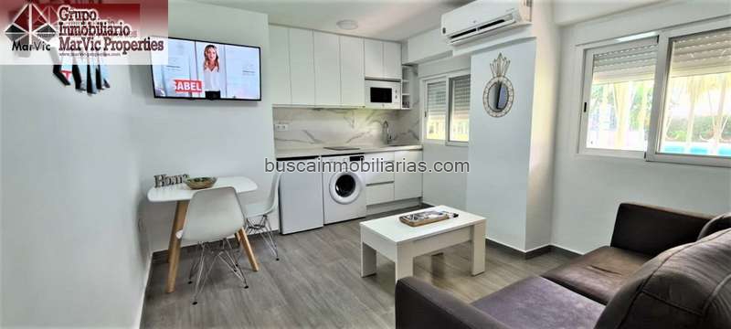 Descubre este encantador estudio ubicado en la vibrante zona de Levante, Benidorm. Con una superficie total de 38 m2 y un espacio útil de 35 m2, esta propiedad seminueva es ideal para disfrutar del estilo de vida mediterráneo. La orientación este garantiza abundante luz natural durante las mañanas. El estudio cuenta con un baño completo y una cocina completamente equipada que se integra a la perfección con el ambiente acogedor del hogar. Entre sus características destacadas están los muebles incluidos, suelo cerámico y carpintería exterior de aluminio que proporcionan durabilidad y estética moderna.