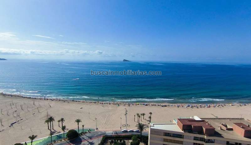 Amplio piso situado en primera línea de la playa de Poniente, en una de las zonas más tranquilas y codiciadas de Benidorm. Su ubicación privilegiada permite disfrutar de la playa nada más salir de casa, con todos los servicios esenciales a pocos pasos: supermercados, parada de autobús, farmacia, restaurantes y más. La vivienda cuenta con 3 dormitorios y 2 baños completos, lo que la hace ideal tanto para familias como para quienes buscan amplitud y confort junto al mar. El gran salón-comedor es muy luminoso y tiene acceso directo a una amplia terraza acristalada desde donde se disfrutan unas espectaculares vistas al Mediterráneo. La cocina es independiente, funcional y con buen espacio de almacenaje. Toda la vivienda está bien conservada y ofrece una distribución cómoda y práctica, con mucha luz natural gracias a su situación esquinera, su orientación sur y su gran ventanal frontal. La urbanización cuenta con piscina comunitaria y parking comunitario. Es una oportunidad única para vivir en primera línea, en una zona tranquila pero bien conectada, ideal tanto como residencia habitual como para disfrutar de unas vacaciones frente al mar.