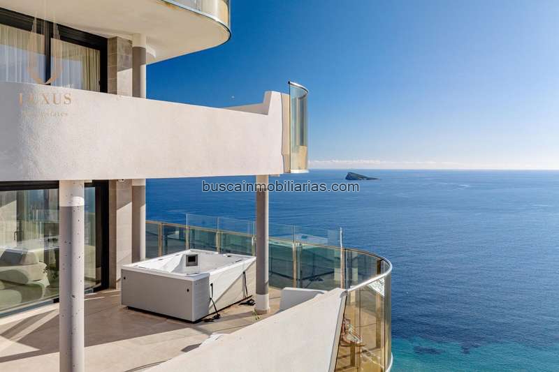 Vistas al mar de ensueño desde cualquier zona de la propiedad, vivienda dotada de amplios ventanales donde el principal protagonista es la luz natural y el azul del mar. Con acabados Premium y mobiliario seleccionado a medida y con mucho gusto, cuidando al milímetro todos los detalles para vivir una vida cómoda y lujosa. Sus 186m2 de vivienda con 82m2 de terraza abierta se distribuyen de manera funcional, esta última dotada de un gran espacio con jacuzzi climatizado para 4 personas con vistas despejadas al mar.