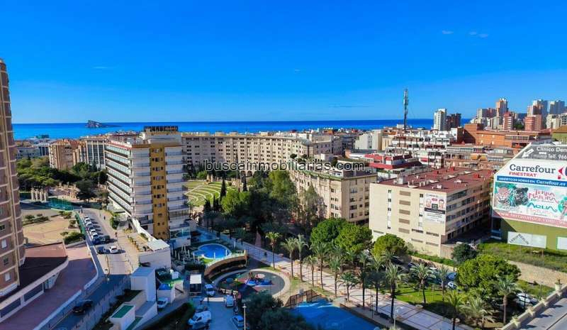 Amplio piso de 120 metros cuadrados en la prestigiosa Avenida Alfonso Puchades, Benidorm, ofrece unas preciosas vistas al mar. Originalmente de cuatro dormitorios, ahora dispone de tres habitaciones luminosas, un baño completo con plato de ducha y un aseo adicional. La cocina es independiente. Desde el balcón, puedes disfrutar de las vistas despejadas al Mediterráneo. Además, el piso cuenta con una plaza de aparcamiento numerada, lo que añade comodidad y tranquilidad. Su ubicación es inmejorable, a medio camino entre la playa de Levante, el centro de Benidorm y la playa de Poniente. Tendrás todo tipo de servicios, comercios y opciones de ocio a pocos minutos andando. Este piso es ideal para quienes buscan espacio, confort y una ubicación céntrica con vistas al mar.