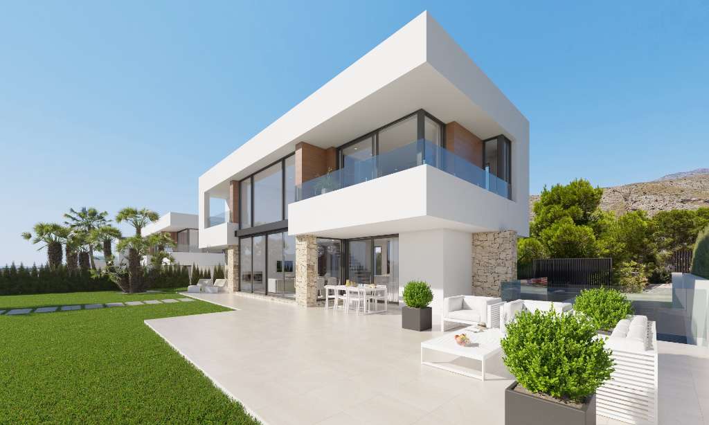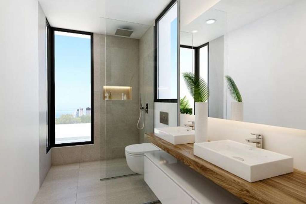 Villas de obra nueva en Benidorm. Esta villa independiente se encuentra en un nuevo complejo a pocos kilómetros de Benidorm. Puede elegir entre diferentes modelos. Esta villa individual cuenta con 3 dormitorios con armarios empotrados, 3 baños, un amplio salón-comedor con ventanas panorámicas, cocina abierta completamente amueblada y amplias terrazas. En el exterior, encontrará un amplio jardín con piscina privada y aparcamiento. Estas nuevas villas se construirán con los más altos estándares de calidad y se diseñarán para ofrecer un alto grado de aislamiento térmico y eficiencia energética. Benidorm es una popular ciudad de ocio en la Costa Blanca. Aquí encontrará tranquilidad, un ambiente agradable y una vida cómoda. Cerca encontrará tiendas, supermercados, bancos, restaurantes y colegios. Si busca entretenimiento, a solo unos minutos encontrará campos de golf, parques temáticos, casinos, centros comerciales, parques acuáticos, discotecas, playas con deportes acuáticos y mucho más. Una propiedad ideal para comprar en España.