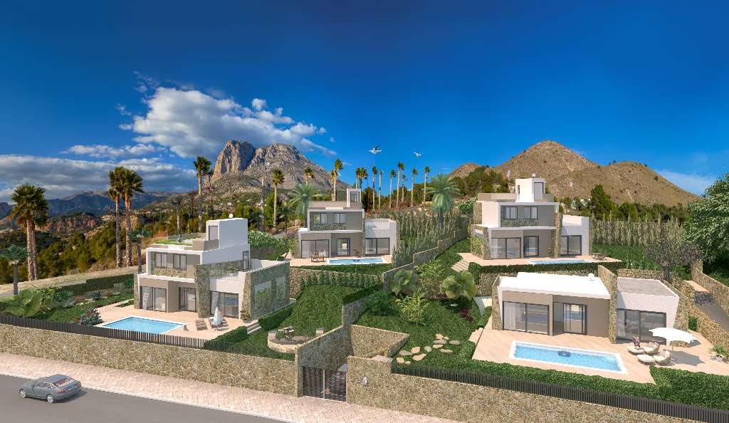 Ofrecemos a la venta villas en el nuevo complejo situado en las pintorescas colinas por encima de Benidorm, una ubicación número uno en la Costa Blanca para muchos turistas internacionales. Cada una de las cuatro villas del nuevo complejo tiene su piscina privada de 6x3 y una gran terraza con vistas al mar y a la montaña. Las villas cuentan con tres dormitorios y tres baños, que se distribuyen en 2 plantas. Aunque hay una casa, construida en una sola planta. Las cuatro casas están situadas en parcelas privadas de 350 a 402 metros cuadrados. Cada parcela tiene una zona ajardinada y una cubierta de piscina.Los modernos chalets en Finestrat se entregarán en septiembre de 2021 con muebles de cocina y campana extractora, piscina de 6x3m, preinstalación de aire acondicionado, persianas eléctricas, algunos azulejos exteriores según plano. Todos los baños estarán completamente amueblados y con espejos y mamparas de ducha estándar.Finestrat - hermoso casco antiguo situado a pocos kilómetros de la popular ciudad de entretenimiento Benidorm. En Finestrat encontrará tranquilidad, ambiente agradable y vida confortable. Cerca de usted encontrará tiendas, supermercados, bancos, restaurantes, escuelas. Pero si quieres entretenimiento, entonces a pocos minutos de golf, parques temáticos, casinos, cabarets, centros comerciales, parques acuáticos, discotecas, playas con deportes acuáticos y mucho más.