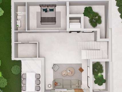 Las villas se distribuyen en 2 plantas y disponen de 3 dormitorios, 3 baños, cocina americana con salón, armarios empotrados, solarium privado, jardín con piscina y aparcamiento para 2 coches.
