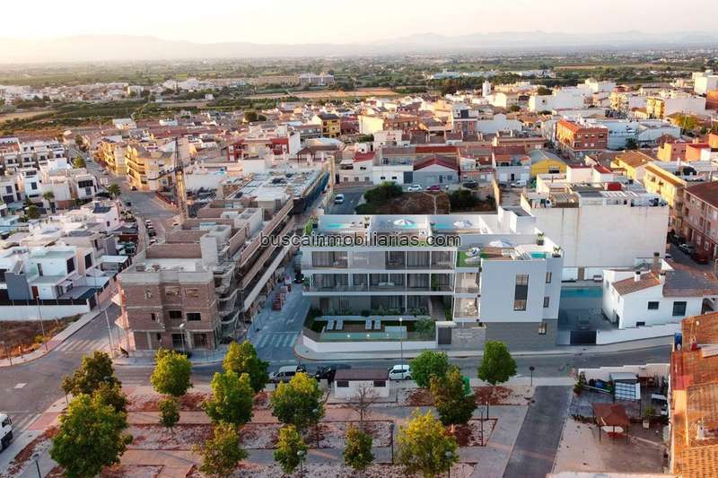 Ubicado en una zona tranquila y privilegiada de Benijófar, frente a una amplia zona verde, el residencial disfruta de una excelente orientación, que permite aprovechar al máximo la luz natural durante todo el día, creando espacios luminosos, cálidos y acogedores. Benijófar es uno de los municipios con más encanto de la Vega Baja, ideal para quienes buscan calidad de vida, tranquilidad y seguridad, sin renunciar a la cercanía de todos los servicios esenciales como supermercados, colegios, restaurantes, centros médicos y zonas de ocio, todos ellos a menos de 5 minutos.