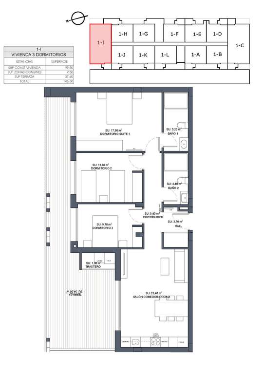 Viviendas modernas de nueva construcción con cocina americana y salón, 2 y 3 dormitorios, 2 baños, terrazas.
