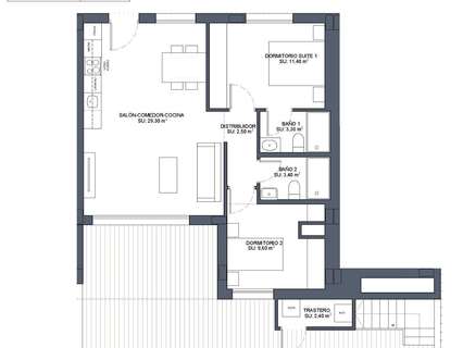 Viviendas modernas de nueva construcción con cocina americana y salón, 2 y 3 dormitorios, 2 baños, terrazas.
