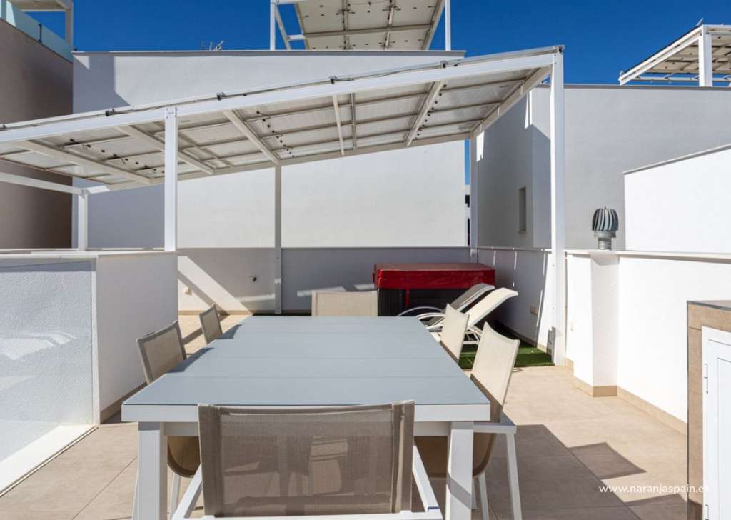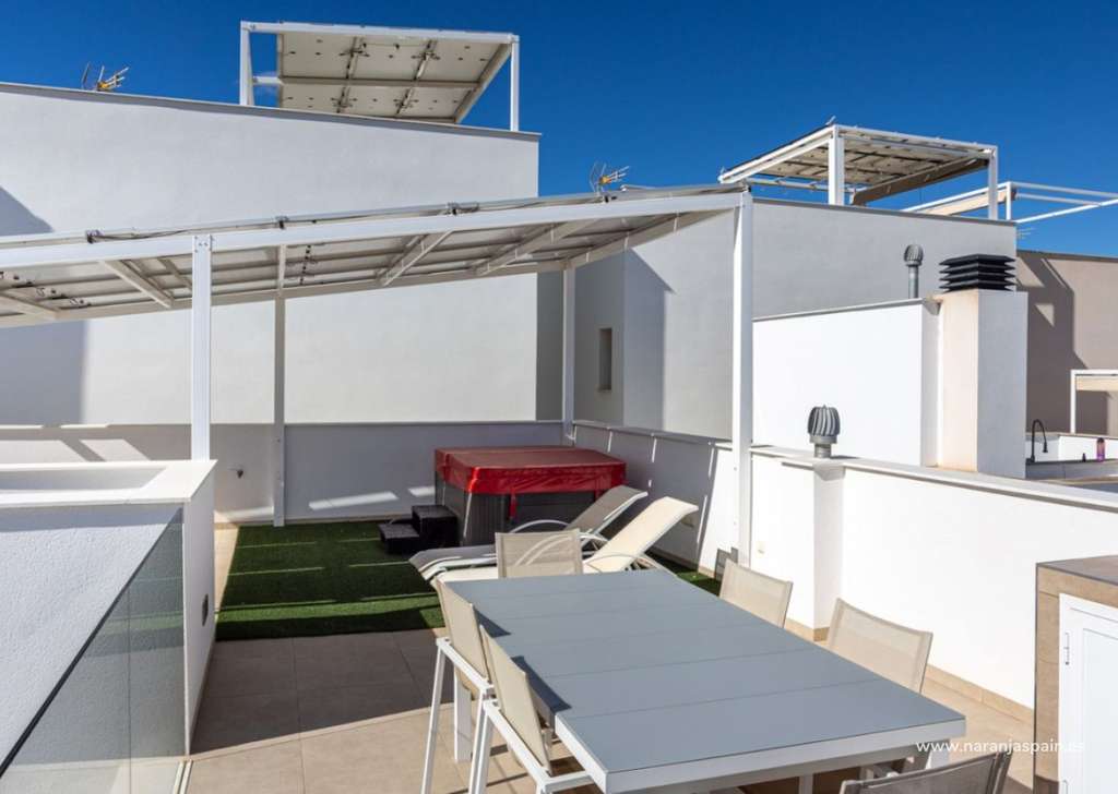 Ubicada en una de las zonas más demandadas y de mayor crecimiento del sur de la Costa Blanca, esta vivienda del año 2018 ofrece confort moderno, privacidad y vistas despejadas a zona verde. Se encuentra frente a un parque protegido donde no se permite nueva construcción, lo que garantiza tranquilidad y vistas abiertas permanentes. El centro del pueblo, con restaurantes, tiendas y todos los servicios, está a poca distancia a pie.