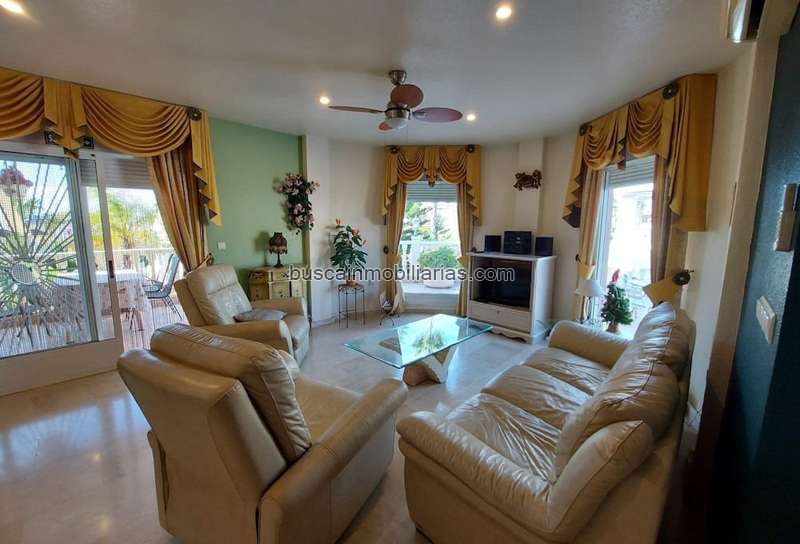 Hay un amplio balcón alrededor de este piso y desde la sala de estar también se puede ir a la piscina.