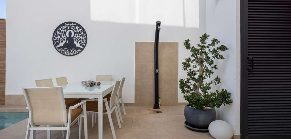 Ubicada en una de las zonas más demandadas y de mayor crecimiento del sur de la Costa Blanca, esta vivienda del año 2018 ofrece confort moderno, privacidad y vistas despejadas a zona verde. Se encuentra frente a un parque protegido donde no se permite nueva construcción, lo que garantiza tranquilidad y vistas abiertas permanentes. El centro del pueblo, con restaurantes, tiendas y todos los servicios, está a poca distancia a pie.