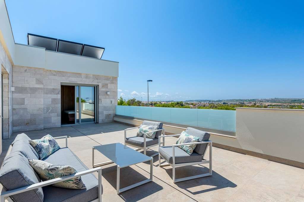 Experimente un lujo inigualable en esta hermosa villa de 4 dormitorios en el corazón de Benijófar, Alicante. Esta propiedad única encarna la elegancia y el confort modernos en un entorno tranquilo y confortable a pocos minutos de todos los servicios esenciales, lo que la convierte en la casa familiar o refugio ideal. Al entrar, le recibe una distribución abierta y espaciosa, diseñada para integrar a la perfección la vida interior y exterior. En la planta baja se encuentra un espacioso dormitorio con armarios empotrados y un lujoso baño. Una de las características más exclusivas de la villa es el acceso directo a la piscina: con solo abrir las grandes puertas de cristal, podrá sumergirse en su propio oasis privado. En la planta superior hay tres amplios dormitorios más, dos de ellos con baño en suite, lo que garantiza la máxima privacidad y comodidad. La joya de la corona en la planta superior es el enorme solárium desde el que se pueden admirar impresionantes vistas panorámicas. El lugar perfecto para tomar el sol, recibir invitados o disfrutar de apacibles puestas de sol. La villa también cuenta con un amplio sótano con espacio para garaje y trastero adicional. El espacioso sótano ofrece infinitas posibilidades y puede convertirse en una sala de estar adicional, un espacio de entretenimiento o una suite de invitados, añadiendo comodidad y versatilidad a su estilo de vida. Un sistema de purificación de agua de última generación proporciona agua limpia y purificada en toda la casa, destacando la atención al detalle en cada rincón. Combinando diseño, ubicación y servicios de primera clase, esta villa de lujo ofrece el máximo nivel de vida mediterránea. ¡No pierda esta oportunidad y consiga un trocito de paraíso en Benijófar!