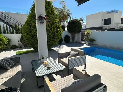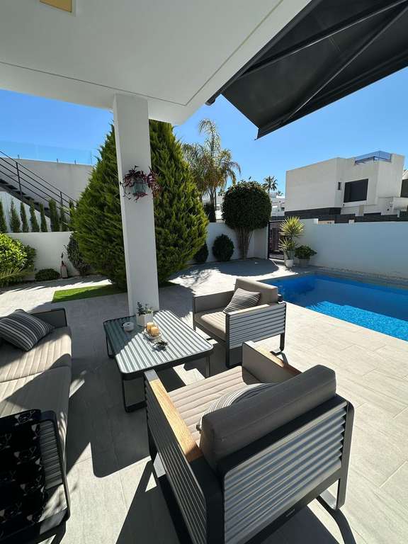 Preciosa villa independiente en venta con 97 m² de superficie habitable en una parcela de 403,47 m², ubicada en una de las zonas residenciales más cotizadas de Benijófar. La propiedad ofrece el máximo confort y excelentes características: piscina privada (9 x 3,5 m), dos amplios dormitorios, dos baños completos, dos trasteros, calefacción por suelo radiante en toda la vivienda, paneles solares para ahorro energético y pintura hidrófuga aplicada en 2024. La espaciosa parcela cuenta con zonas ajardinadas, terrazas soleadas y espacios exteriores perfectos para el ocio y la relajación. Ubicación privilegiada en Benijófar, cerca de todos los servicios, restaurantes, supermercados y a pocos minutos en coche de las playasdeGuardamar.~