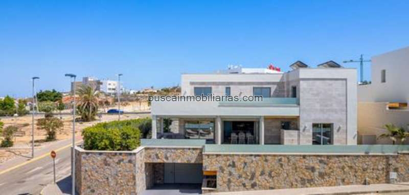 This unique property embodies modern elegance and comfort in a tranquil and comfortable setting just minutes from all essential amenities, making it an ideal family home or retreat. When you enter you are greeted by an open and airy floor plan designed to provide seamless indoor and outdoor living. On the ground floor there is a spacious bedroom with built-in wardrobes and a luxurious bathroom. One of the most unique features of the villa is the direct access to the pool: just open the large glass doors and you can immerse yourself in your own private oasis. Upstairs there are three more spacious bedrooms, two of which have en-suite bathrooms, ensuring the highest level of privacy and comfort. The jewel on the top floor is the huge solarium from which you can admire breathtaking panoramic views. The perfect place to sunbathe, entertain guests or enjoy peaceful sunsets. The villa also has a large basement with space for a garage and additional storage space. The spacious basement offers endless possibilities and can be converted into an additional living room, entertainment space or guest suite, adding extra comfort and versatility to your lifestyle. A state-of-the-art water purification system provides clean, purified water throughout your home, highlighting attention to detail in every corner. Combining design, location and first-class amenities, this luxury villa offers the highest level of Mediterranean living. Don't miss this opportunity and get a piece of paradise in Benijofar!