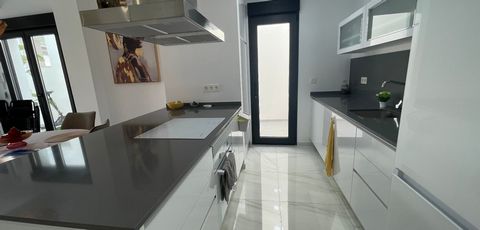Esta impresionante villa se encuentra en perfecto estado y ofrece un diseño contemporáneo que prioriza la comodidad y el estilo. La zona de estar y comedor de concepto abierto, junto con una cocina moderna, crean un espacio acogedor, ideal tanto para el día a día como para recibir invitados. En la planta baja, hay un dormitorio amplio con armarios empotrados, acompañado de un baño completo. En la planta superior, un encantador distribuidor da acceso a una pequeña terraza, perfecta para disfrutar del café de la mañana o relajarse tranquilamente. El segundo dormitorio es amplio y cuenta con un elegante baño en suite. Al final del pasillo, el dormitorio principal ofrece un auténtico refugio, con su propio baño en suite y acceso directo a una terraza privada y soleada, perfecta para descansar y disfrutar del clima mediterráneo. La vivienda cuenta con aire acondicionado y está lista para entrar a vivir, ofreciendo confort y calidad desde el primer día. Ubicada en el corazón de la Costa Blanca, Benijófar es una encantadora y bien comunicada localidad de la provincia de Alicante. Con su ambiente mediterráneo relajado, Benijófar logra un equilibrio perfecto entre el carácter tradicional español y las comodidades modernas. A pocos minutos en coche de las preciosas playas de Guardamar y Torrevieja, y con todos los servicios esenciales—supermercados, restaurantes, cafeterías, farmacias—a pocos pasos, es un destino ideal tanto para vivir todo el año como para escapadas vacacionales.