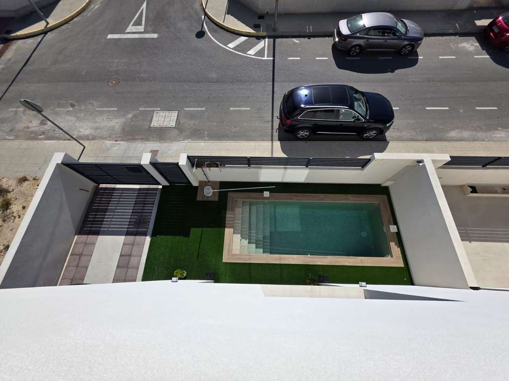 Villa independiente, moderna, de 2 plantas en parcela de 147m2, construida en 2024, en una zona residencial tranquila de Benijofar, a unos 5 minutos en coche de Ciudad Quesada. La planta baja consiste en un gran salón comedor con ventanales y acceso a la gran terraza, una cocina abierta totalmente equipada, un aseo y un trastero. La planta primera consiste en dos dormitorios dobles y un cuarto de baño con ducha Italiana. Con solárium con magnificas vistas panorámicas. Acceso por escalera interior. Dispone de una piscina privada (con lamina de 12,60 m2), gran jardín con plantas Mediterráneas, zona barbacoa y aparcamiento para vehículo en la parcela privada. Con acceso directo desde la calle. Amueblada. Armarios empotrados en los dormitorios. Aire acondicionado por conductos. Estilo moderno. Materiales de alta calidad. Muy buena ubicación, cerca de todos los servicios, supermercados, cafeterias, etc.., a unos 15/20 minutos en coche de las playas de Guardamar, La Mata y unos 10 minutos en coche de los Campos de Golf de La Marquesa. Todo un lujo! Ideal para relajarse y disfrutar del maravilloso clima Mediterráneo!