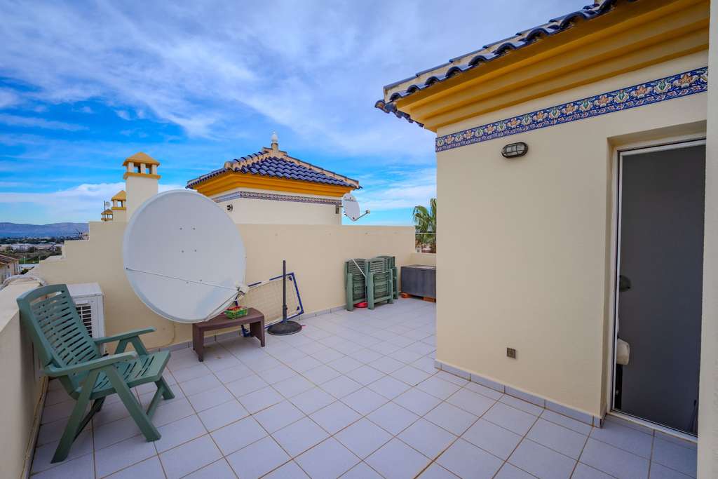 Ubicación privilegiada en Benimar, Alicante Luminosa propiedad en esquina con excelente luz natural. 3 habitaciones | 2 baños Dormitorio en el sótano con baño privado y entrada privada. Calefacción por suelo radiante en planta baja y primera. Aire acondicionado y ventiladores de techo en todas las habitaciones. Mosquiteras instaladas en todas partes Balcón Julieta en el rellano del primer piso Terraza privada con vistas a la piscina comunitaria. Amplio solárium privado en la azotea con vistas abiertas a la montaña. Aparcamiento subterráneo más aparcamiento fuera de la carretera. Canalones instalados en toda la propiedad. A poca distancia de bares, restaurantes y servicios locales. Aproximadamente a 10 minutos de las playas de Guardamar. Aproximadamente 30 minutos al aeropuerto de Alicante #13; #13;