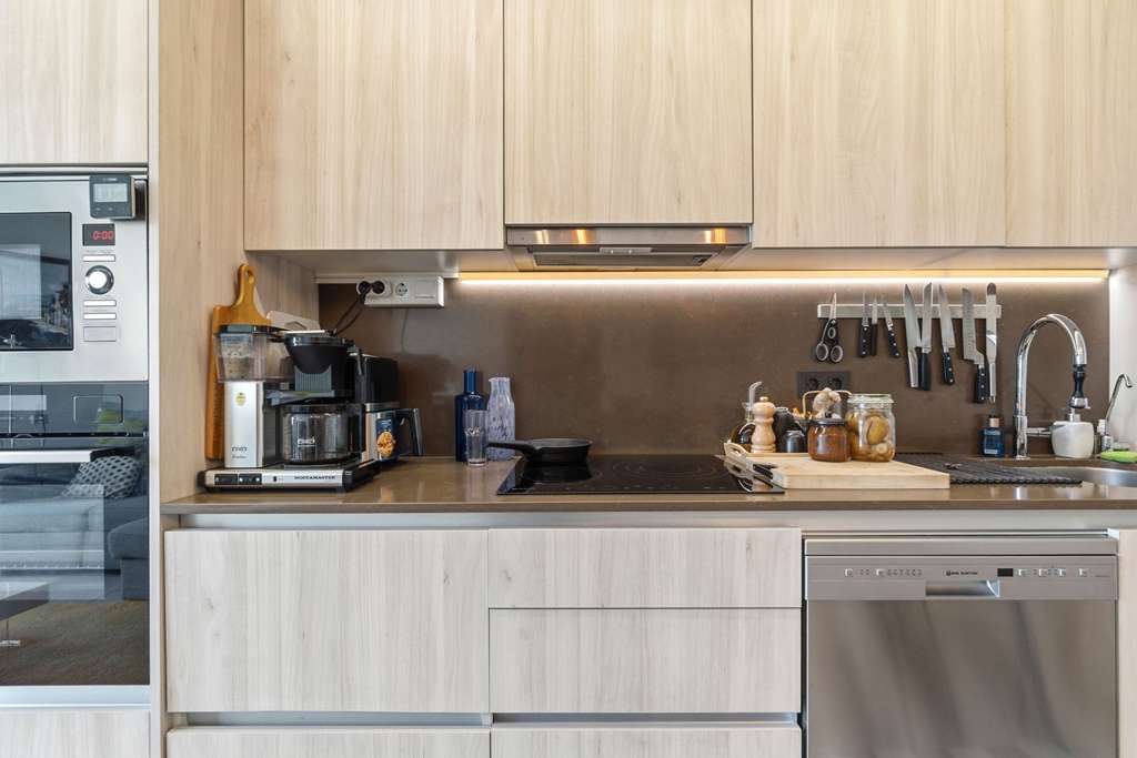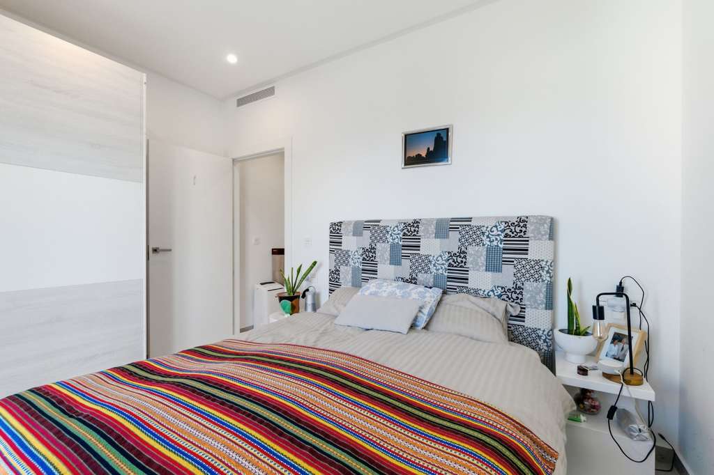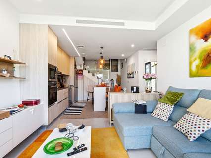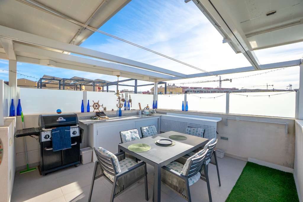 En el interior encontramos un ambiente luminoso y contemporáneo. La cocina totalmente equipada se integra perfectamente con la zona de estar, mientras que las persianas eléctricas tipo lamas y los estores verticales aportan confort y privacidad. El aire acondicionado por conductos en toda la vivienda garantiza una temperatura agradable durante todo el año. En la planta baja hay un baño completo.
