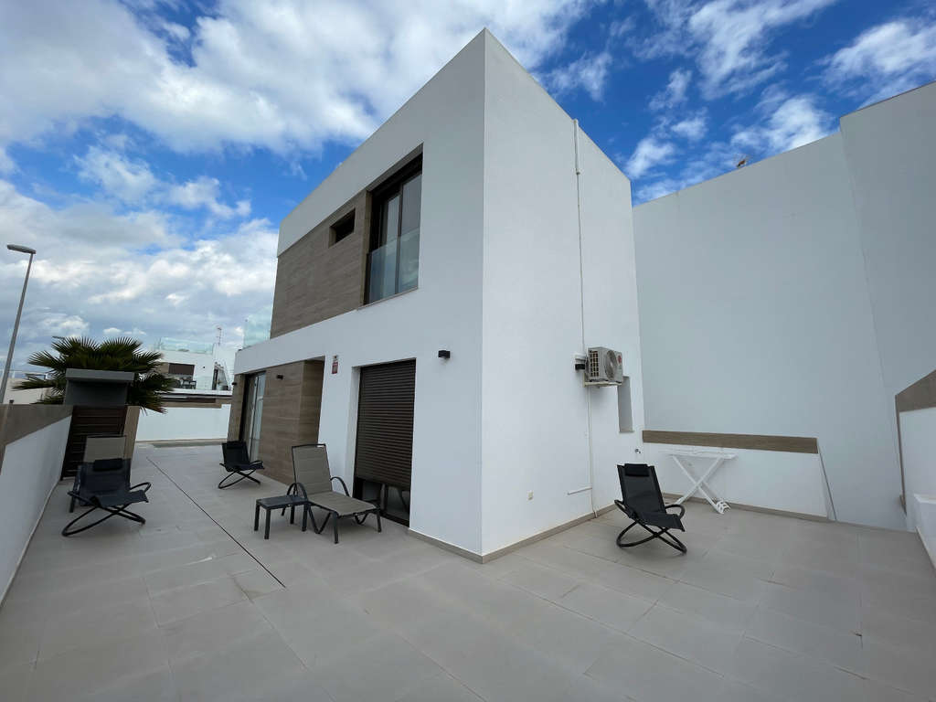 Moderna y elegante villa de tres dormitorios en Benijofar. Construida en 2022. Ubicación céntrica, a solo 12 minutos de las playas. Cocina abierta, sala de estar, piscina privada. Extras: Armarios empotrados, sotano terminado, aire acondicionado, persianas eléctricas, etc