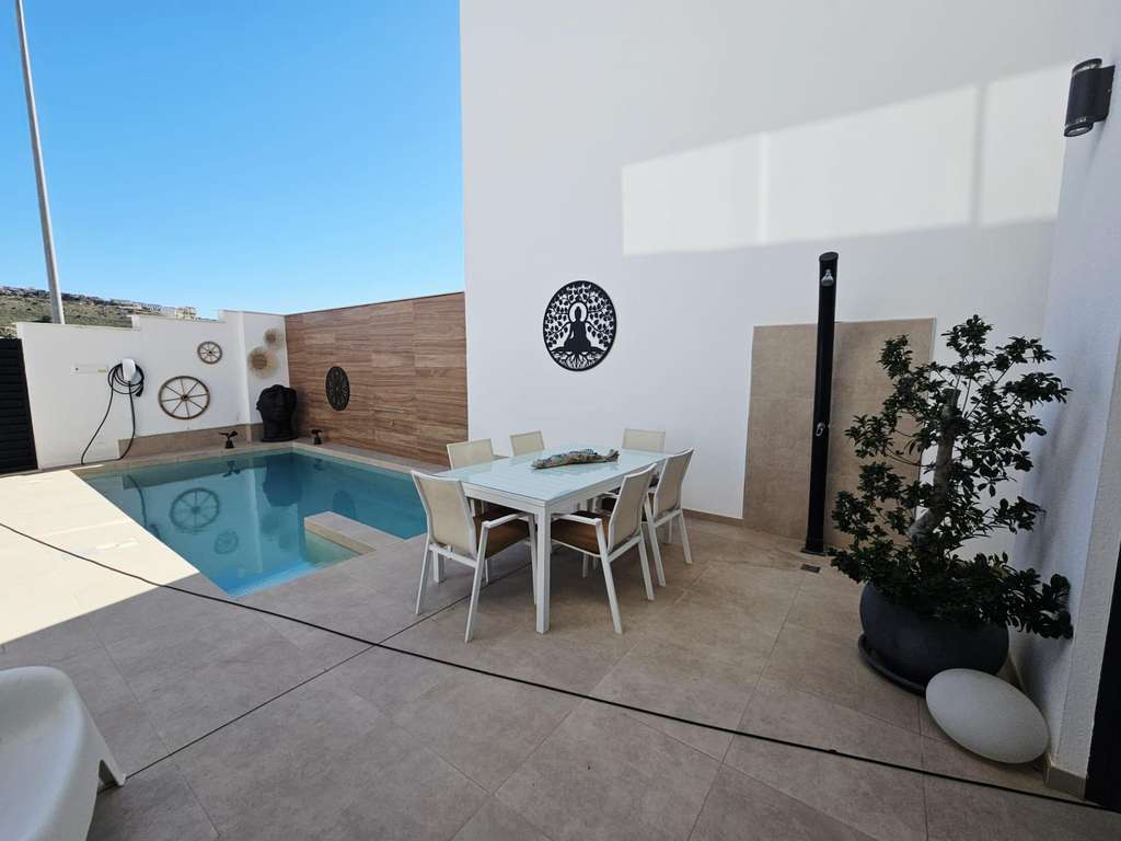 Descubre esta magnífica villa situada en la cotizada zona de Benimar, en Benijofar. Con una superficie construida de 127 m² y útil de 118 m² sobre un terreno de generosos 198 m², este chalet ofrece el equilibrio perfecto entre confort y estilo. Cuenta con tres amplios dormitorios dobles y tres modernos baños que garantizan privacidad para todos los miembros del hogar. La propiedad se encuentra en buen estado general e incluye extraordinarias características como piscina privada ideal para disfrutar bajo el sol mediterráneo. Su orientación al este proporciona luminosidad durante todo el día mientras gozas desde su amplio solarium las despejadas vistas hacia los alrededores naturales. Además tiene parking privado disponible.Benijofar es conocida por sus servicios cercanos: centros comerciales a pocos minutos así como colegios reputados; además está ubicada a tan solo13 km del mar Mediterráneo lo cual permite acceder fácilmente a playas espectaculares.El lujo accesible te espera aquí.