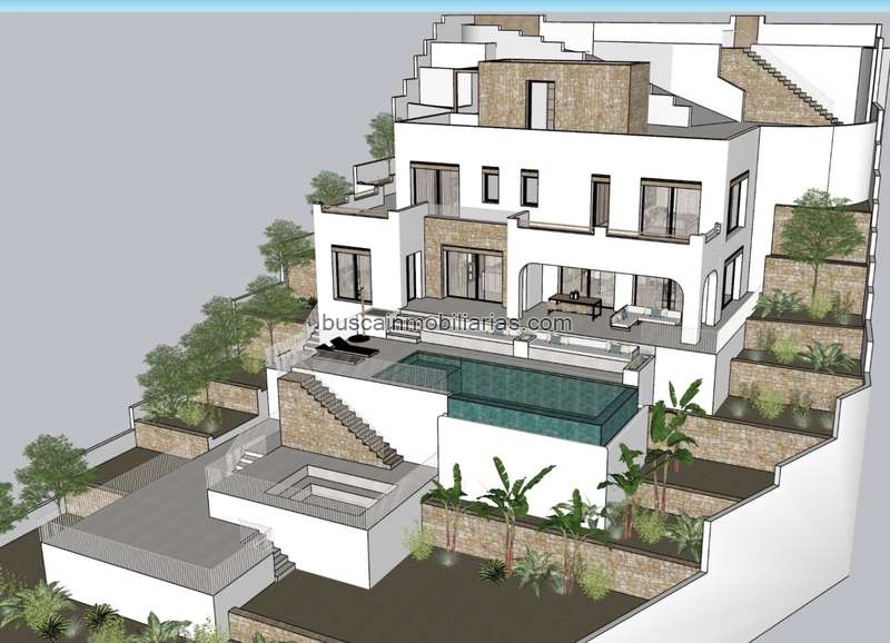 Villa de lujo en venta en Benissa en una parcela de 1,199 m2. La propiedad cuenta con 232.2 m2 distribuidos en tres plantas, ofreciendo cuatro habitaciones (dos con baño en suite), tres baños, un aseo y una cocina moderna. Las características incluyen calefacción por suelo radiante, aire acondicionado, doble acristalamiento y ascensor preinstalado. El espacio exterior incluye varias terrazas y una piscina privada con vistas al mar. Entrada automática con puerta y aparcamiento para varios coches. Ubicada cerca de los servicios locales y playas.