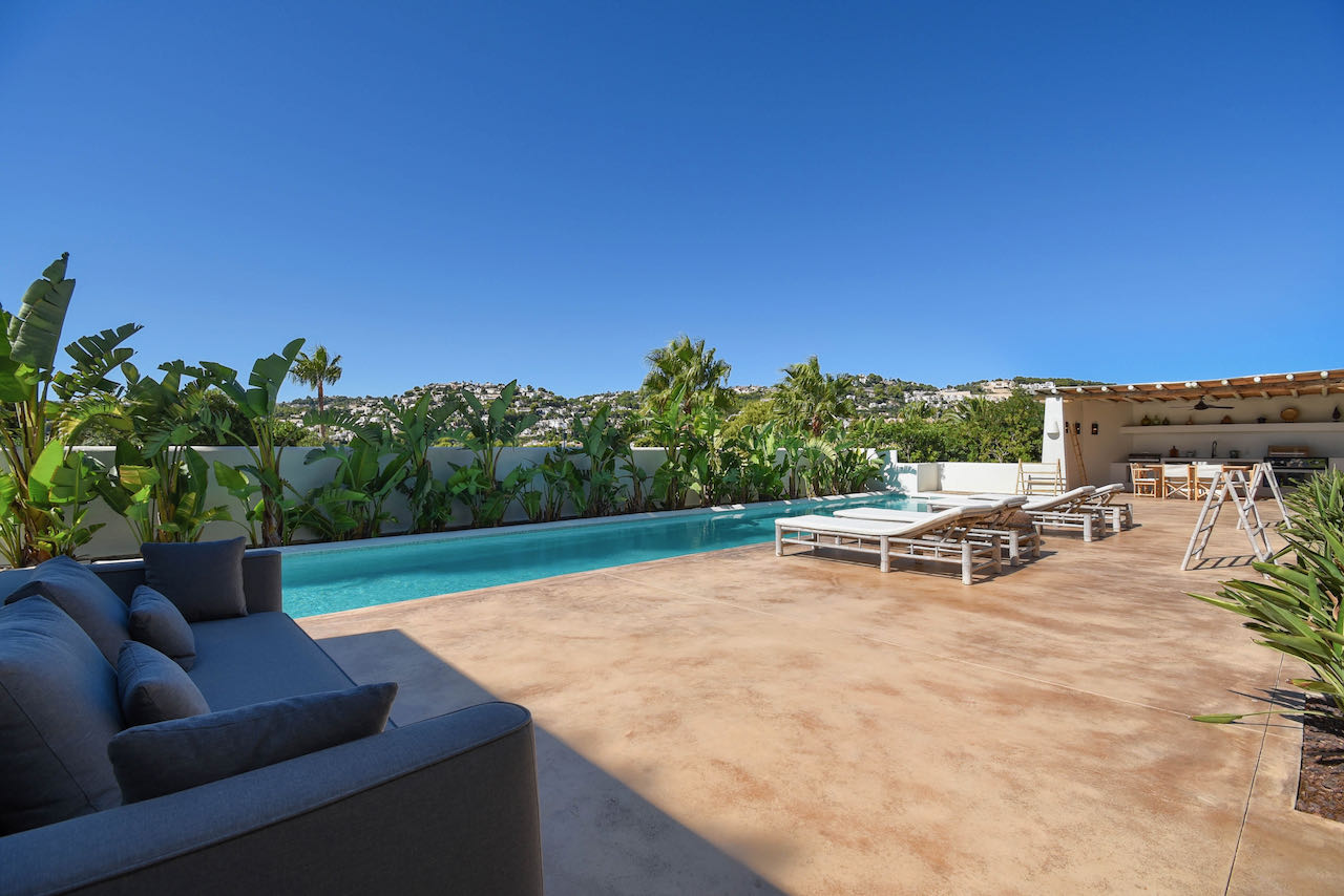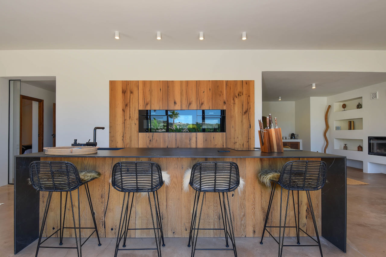 Espectacular villa de estilo ibicencoCuatro dormitorios y tres bañosModerna cocina americana totalmente equipada1 plantaGran piscina y terrazasCocina de verano y zona de barbacoaSauna con duchas y baños de hieloLavadero y trasteroCarport Vistas abiertas y a poca distancia del mar