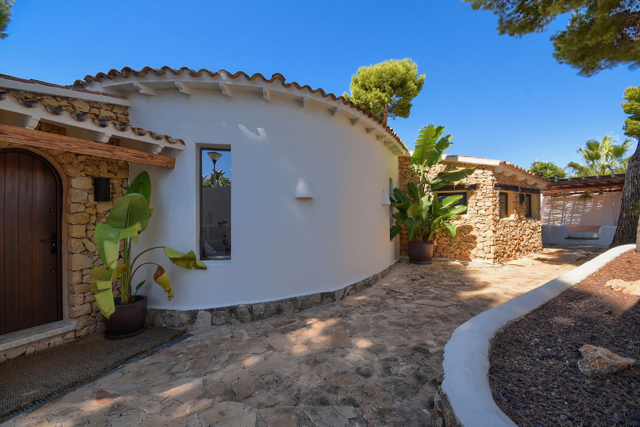 Esta espectacular villa de estilo ibicenco se encuentra en San Jaime, una de las zonas más populares de Benissa. Tiene cuatro dormitorios, tres baños y todo está construido en una sola planta con acabados de alta calidad en un hermoso estilo ibicenco.
