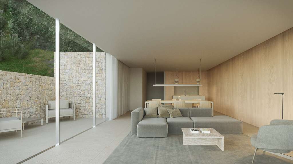 Planta semisótano: Aquí se ubica la zona de día, cocina abierta con isla, zona de estar y comedor, aseo y trastero. Desde esta zona hay vistas a un patio con acceso a través de una puerta de cristal, un lugar perfecto para una vertical.
