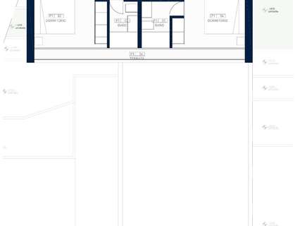 - Carpintería exterior de aluminio, con carpintería minimalista y puertas correderas. Ventanas oscilobatientes en baños.- Carpintería interior: armarios empotrados en dormitorios con puertas correderas acabadas y lacadas en blanco satinado. Puertas interiores acabadas en blanco satinado.- Mosquiteras en todos los baños.- Iluminación interior indirecta en laterales de techo con tiras LED en zona de día y dormitorios.- Iluminación en baños y cocina con focos LED integrados en el techo.- Los espejos en los baños cuentan con iluminación LED indirecta.- Todos los baños están equipados con inodoro suspendido ROCA.- Todos los muebles de baño son modelos de pared con mecanismo de suspensión.