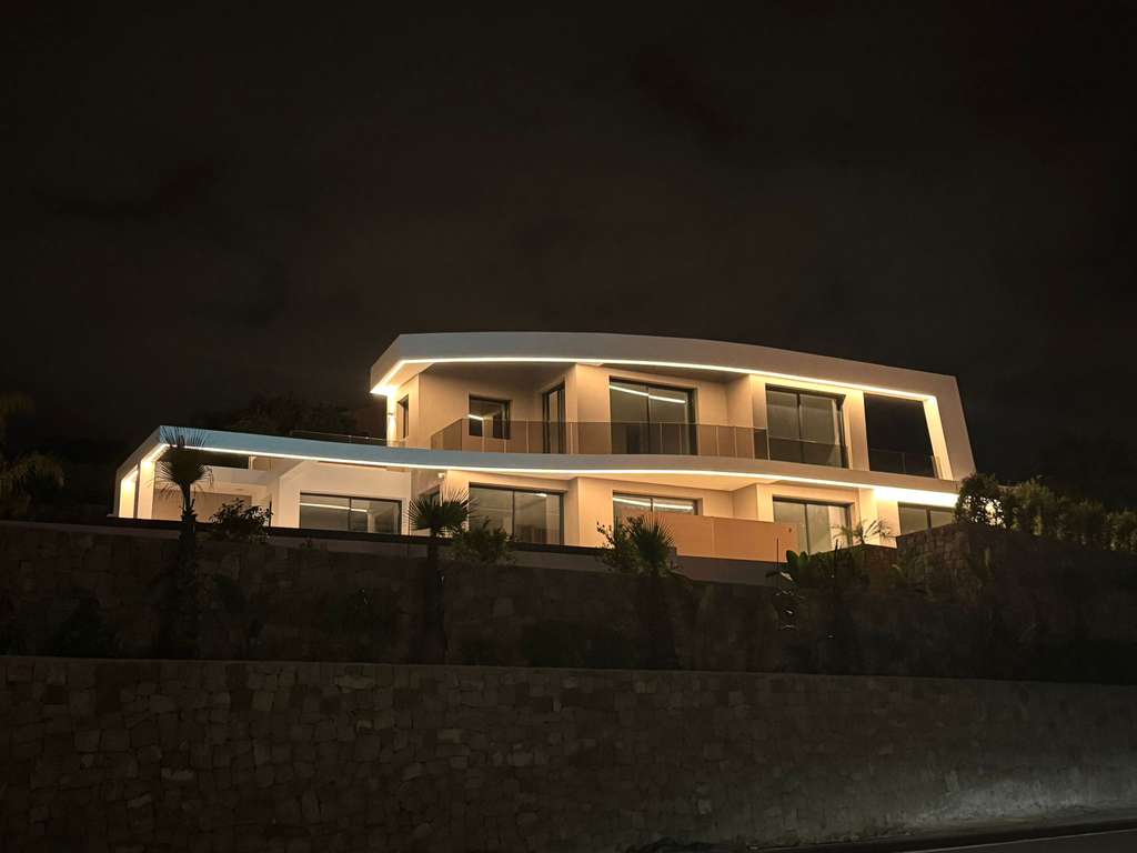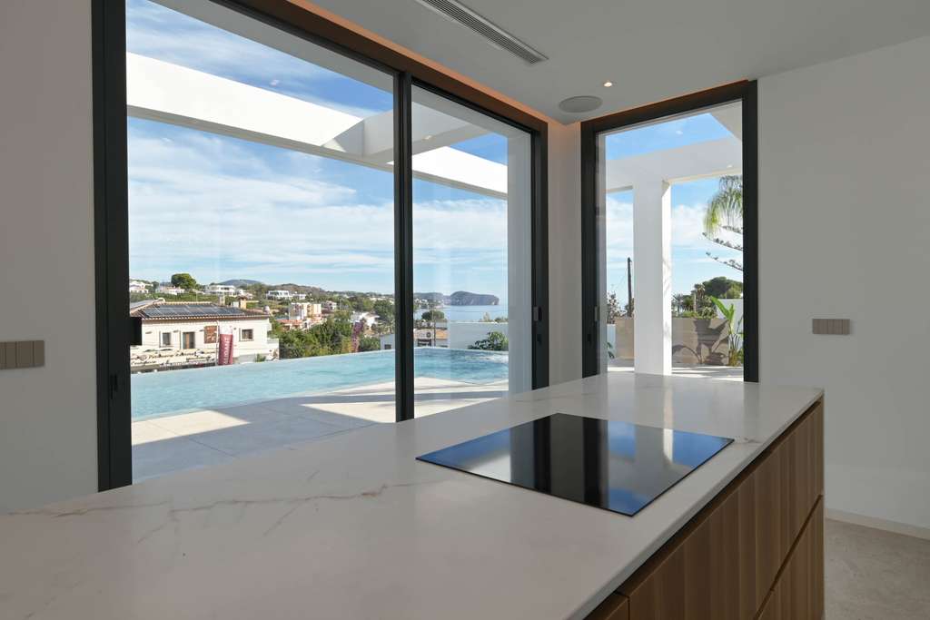 Presentamos una nueva villa de lujo situada en una amplia parcela de 1250 m², que ofrece impresionantes vistas al mar y vistas despejadas hacia Moraira. Esta exquisita propiedad está idealmente ubicada en una tranquila urbanización, a solo 240 metros de la prístina playa de La Fustera y a solo 2 km del bullicioso centro de Calpe.