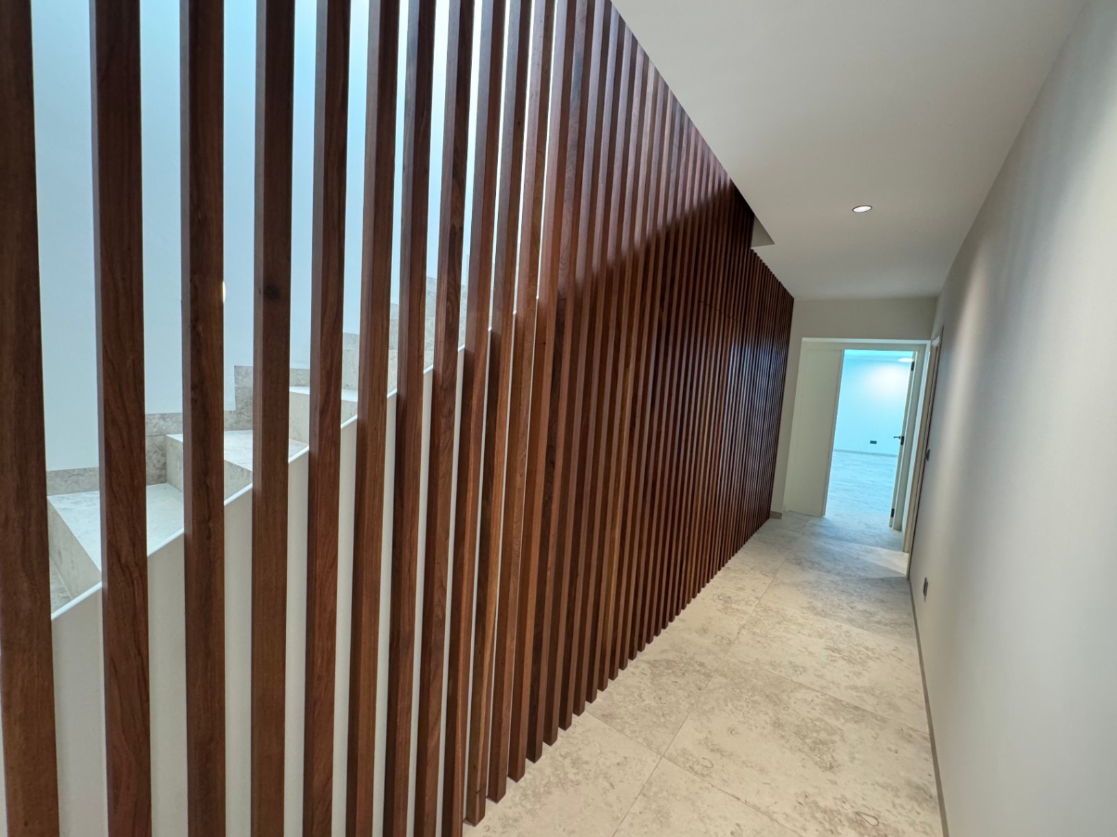 La planta alta consta de: hall de entrada, cocina completamente equipada, con isla y abierta al salón-comedor desde donde se accede a la terraza y zona de piscina, 3 dormitorios dobles conarmarios empotrados, uno de ellos con baño en-suite y otro baño familiar, todos los dormitoiros tienen acceso a la terraza de la piscina.