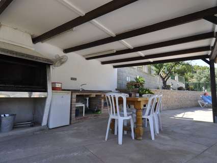 Un espacio con barbacoa cubierta con fregadero y cocina de gas, ideal para disfrutar comidas o refresco al aire. Amplia piscina de 5 x 10 metros, rodeada de plantas mediterráneas, con vistas al paisaje y las montañas. en este espacio también encontramos duchas y WC con lavabo.