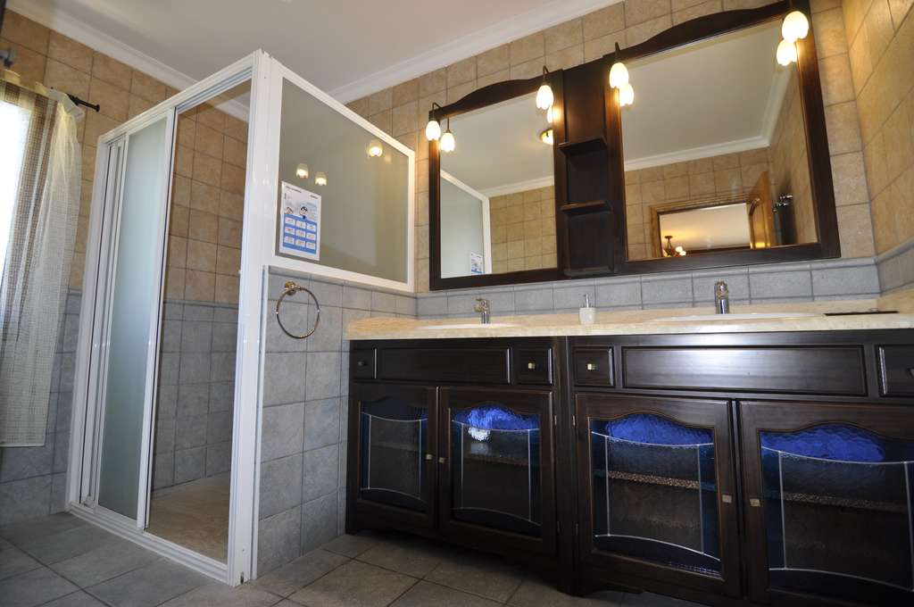 En la segunda planta encontramos la habitación principal de grandes dimensiones, con su propio vestidor y un amplio baño en suite. Desde el dormitorio se puede acceder a una terraza cubierta, desde la cual se puede disfrutar de una maravillosa vista abierta al paisaje y las montañas. Dos dormitorios amplios con aire acondicionado. Un baño completamente equipado y con ducha. Desde una pequeña sala, actualmente utilizada como mini-salón de entretenimiento, se accede a una amplia habitación con aire acondicionado, de 32 mq, actualmente montada con 7 camas individuales y armarios roperos.