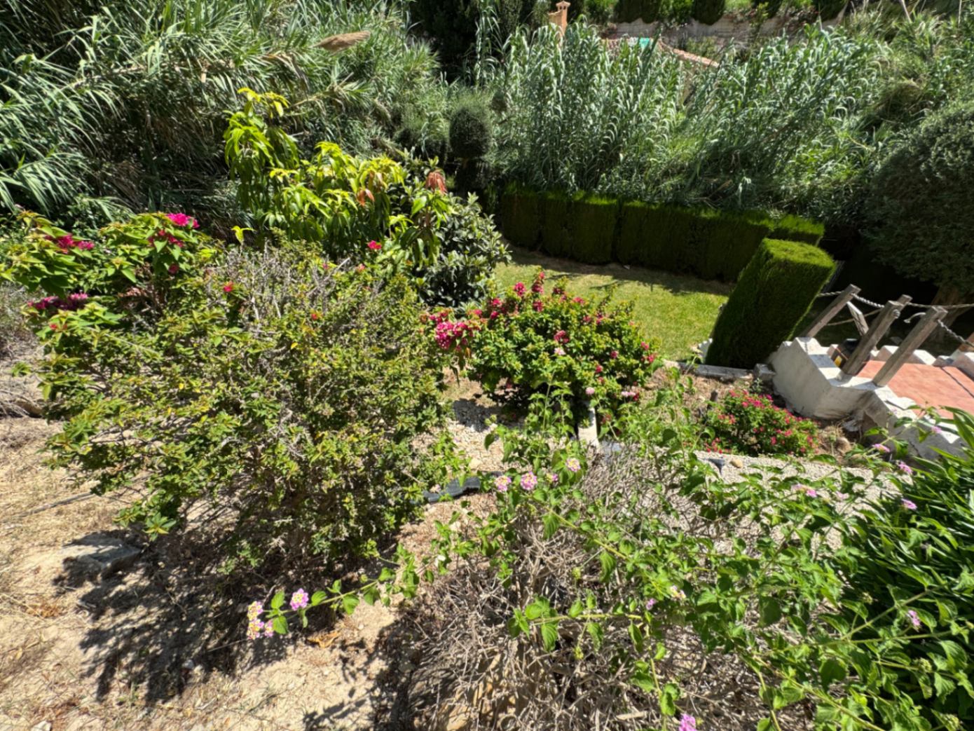 La casa, con 2 viviendas independientes, se accede bajando unos pocos escalones desde la calle y se llega a la planta baja (mismo nivel piscina), consta de: cocina cerrada, salón-comedor con chimenea y estufa de leña, 2 dormitorios dobles con armarios empotrados, uno de ellos con baño en-suite y 1 aseo con ducha familiar. La planta inferior consta de: a) trastero y terraza con vistas al mar y horno para pizzas. B) cocina con barra, salón, 2 dormitorios dobles con armarios empotrados, 1 aseo con ducha y trastero, desde esta planta se baja al jardín con césped y árboles frutales (olivos, níspero, limonero, naranjo...). Ventanas de aluminio con cristal doble. Calefacción central a gas.