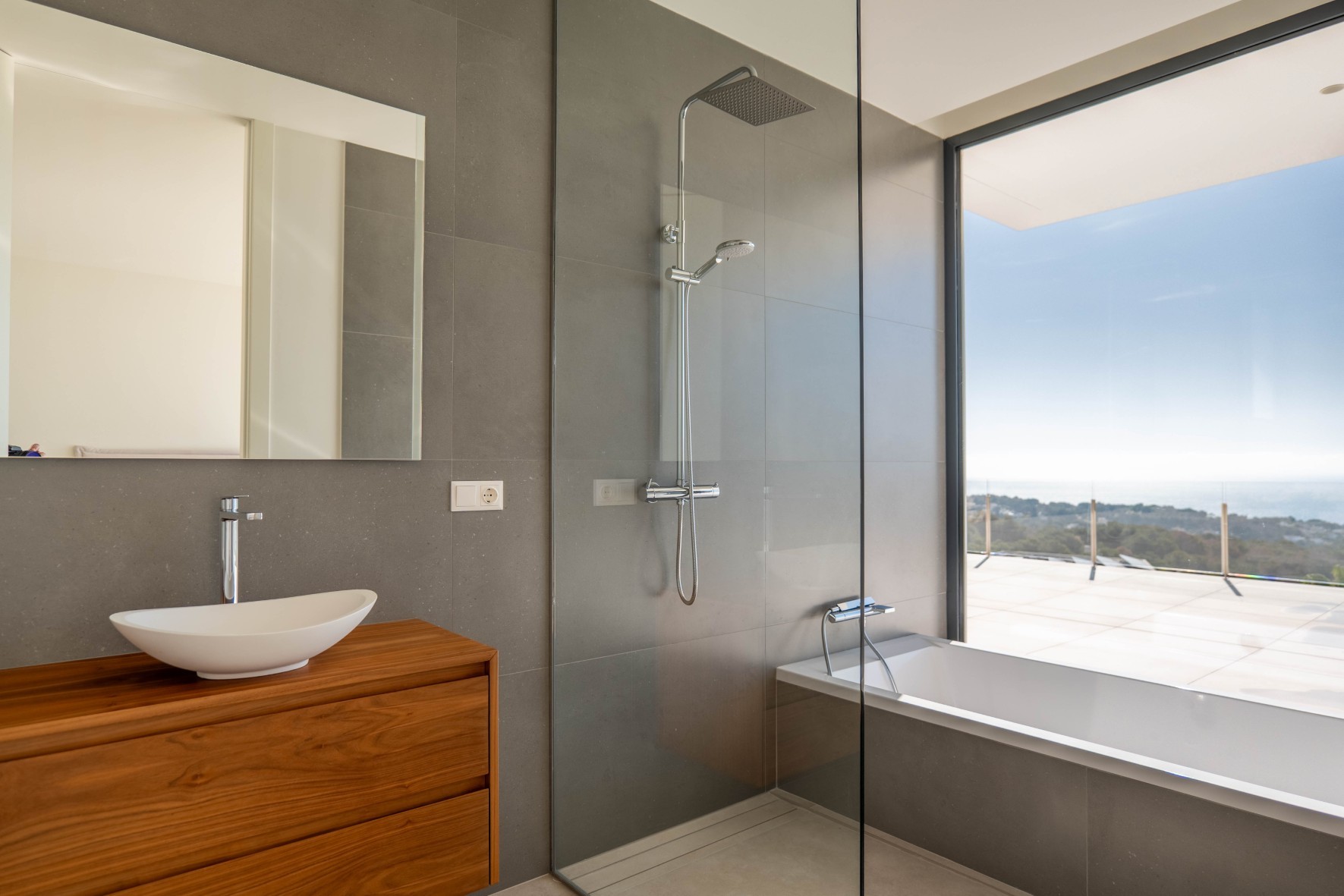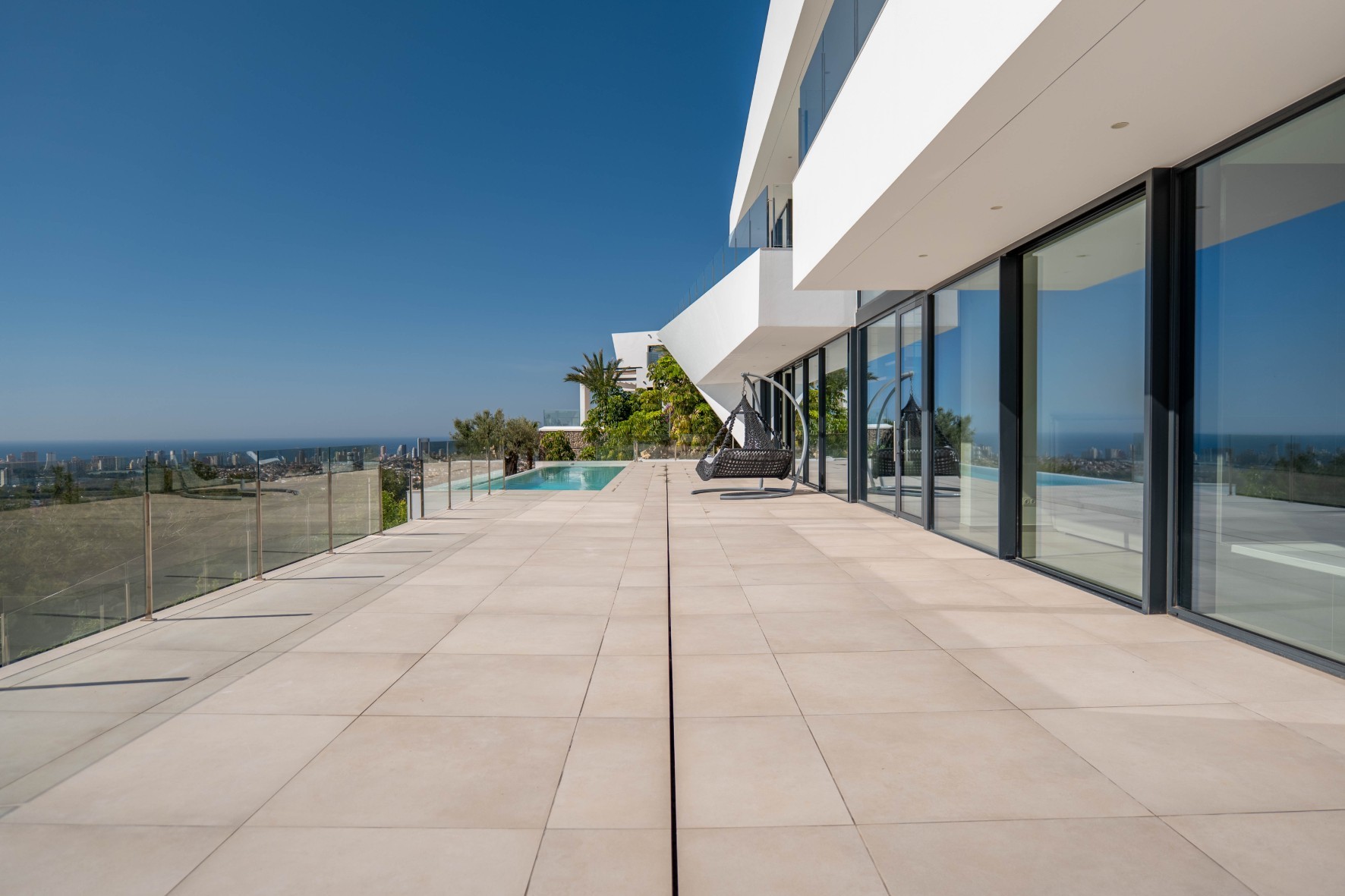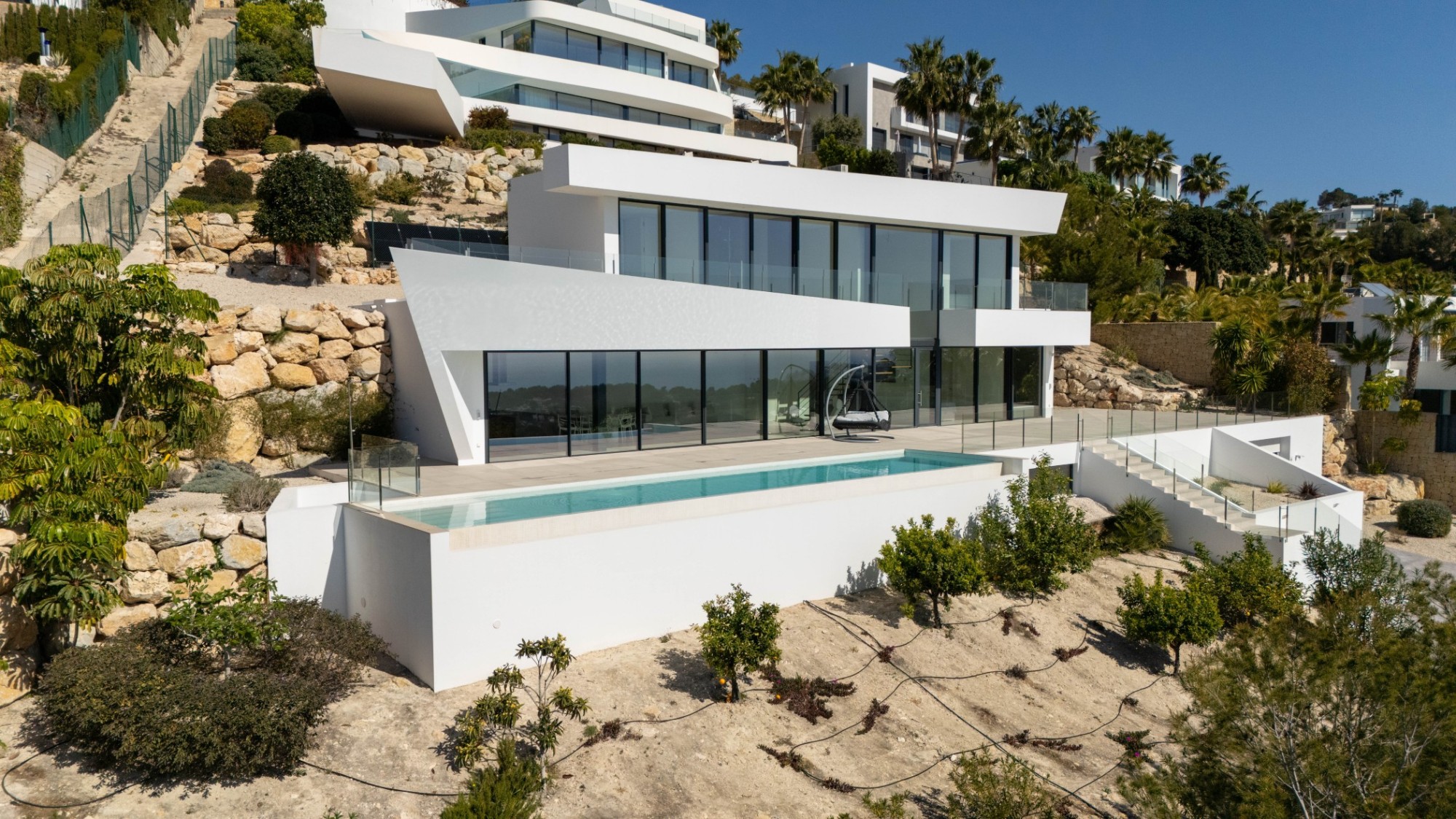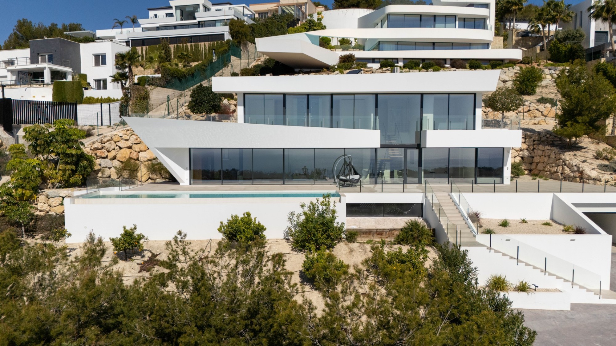 Nueva y moderna villa en venta en Calpe y Benissa, en una parcela de grandes dimensiones con impresionantes vistas panorámicas al mar y al Peñón de Ifach.Esta exclusiva propiedad, construida en 3 plantas con materiales de alta calidad, ofrece una experiencia de lujo incomparable. En la planta semisótano, encontrarás un garaje para dos coches, una zona diáfana de más de 100 m² perfecta para un gimnasio o sala de juegos, y un ascensor que conecta todas las plantas.La planta baja incluye un espacioso salón-comedor, cocina moderna, aseo de cortesía, y un dormitorio principal con vestidor y baño en suite, todo con acceso directo a la terraza y la piscina. La piscina, de más de 15 metros de longitud y con desbordamiento, es ideal para disfrutar del clima mediterráneo.En la planta alta, hay tres dormitorios de invitados, cada uno con acceso a una terraza cubierta, proporcionando un espacio privado y cómodo para todos.La villa está semiamueblada con muebles nuevos y equipada con suelo radiante y aire acondicionado por conductos. Además, cuenta con un jardín mediterráneo con riego automático incluido en el precio.No pierdas la oportunidad de vivir en esta lujosa villa de nueva construcción en una de las zonas más exclusivas de Calpe y Benissa, con vistas espectaculares y acabados de alta gama. ¡Contáctanos hoy para más información!
