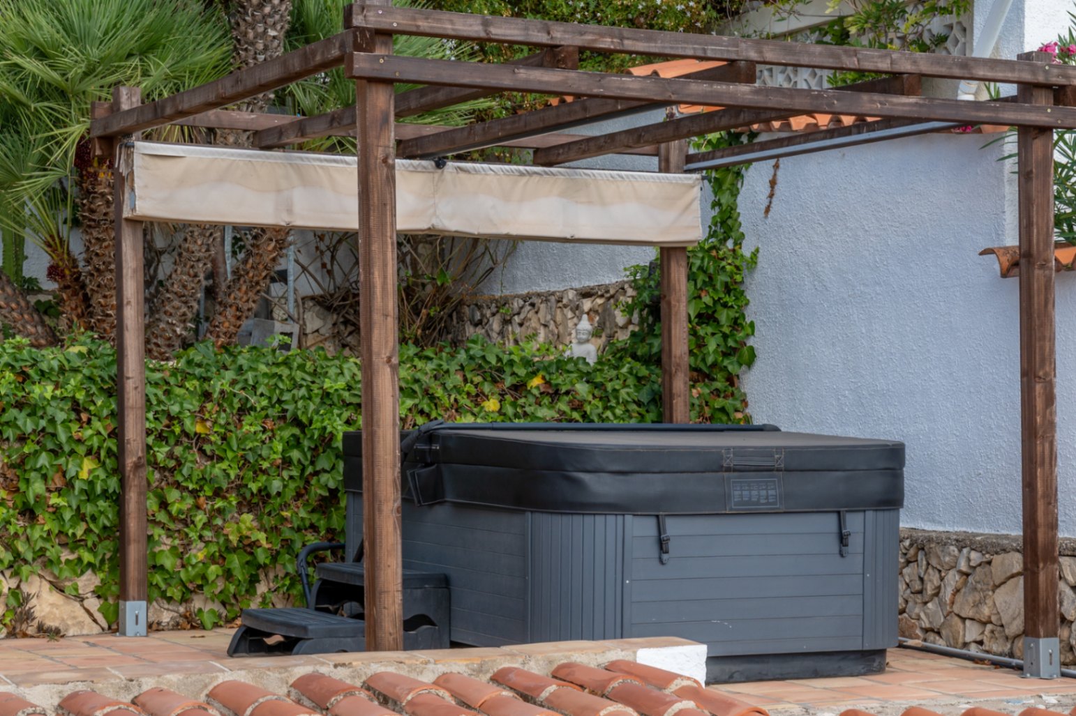 Por el exterior tiene: piscina (8 X 4 m) de agua salada, ducha exterior, barbacoa y horno de pan/pizza, también tiene Jacuzzi y garaje, con entrada por la calle de abajo.