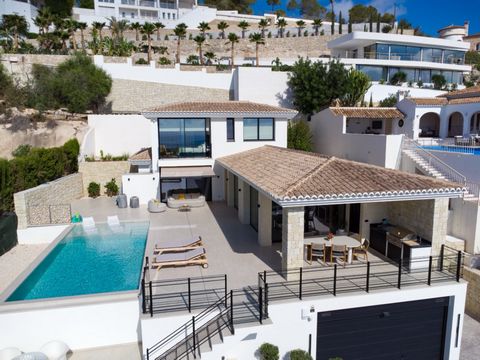 Discover this stunning villa in Benissa, where Mediterranean charm meets modern elegance. With its clean lines, natural stone accents, and large windows, this property offers a unique combination of design, comfort, and breathtaking views of the Mediterranean Sea. The villa features 3 bedrooms and 2 bathrooms, designed with an eye for space and luxury. The bright living room connects directly to the outdoor areas, while the fully equipped kitchen is fitted with high-quality appliances and smart details such as a wine cabinet and integrated extractor. A multifunctional room of 35 m² and a spacious garage of 60 m² provide extra flexibility for guests or hobbies. Outdoors, everything revolves around relaxation and enjoyment. The 9x4 m private pool forms the centerpiece of an impressive 145 m² sun terrace, complete with panoramic sea views. The covered terrace with outdoor kitchen invites you to long summer evenings, while amenities such as an outdoor shower, sunshade, and outdoor toilet enhance comfort. The location is ideal: just 5 minutes from Cala La Fustera, 15 minutes from Moraira, and an hour’s drive from Alicante Airport. Everything you need—beaches, restaurants, shops, and golf courses—is within easy reach. Extras such as underfloor heating, individually controlled air conditioning, solar panels, a heat pump, and a charging point for electric cars make this villa sustainable and future-proof. Are you ready to wake up every day to sea views? Schedule a viewing today and be convinced by the unique charm of this luxury villa in Benissa.