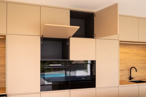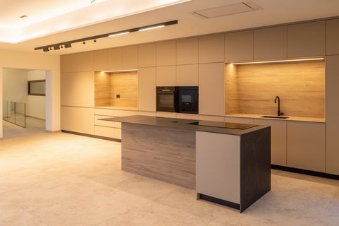 This move-in ready newly built villa in Benissa combines Mediterranean elegance with modern comfort. Located just 1.5 km from the award-winning La Fustera beach and surrounded by nature and the sea, this property offers a unique opportunity to experience coastal living in style. The villa features 4 spacious bedrooms and 3 bathrooms, spread over two floors. The bright living and dining room seamlessly connects to a luxurious kitchen with an island and floor-to-ceiling cabinets. On the ground floor, you will find a guest suite with a walk-in closet, a double garage, guest toilet, and a complete wellness area. Upstairs are the remaining bedrooms, one of which has its own bathroom and direct access to the pool terrace. The outdoor spaces are designed for year-round enjoyment. The heated pool with automatic cover, heat pump, and LED lighting forms the centerpiece of the terrace. A low-maintenance garden with Mediterranean plants, outdoor shower, and various relaxation zones create the ideal setting for peace and entertainment. The location is perfect: between Moraira and Calpe, with beaches, marinas, restaurants, and golf courses within easy reach. International connections are also excellent, with Alicante Airport just an hour's drive away. Additional features such as solar panels, aerothermal hot water, designer bathrooms, video intercom, and motorized gate underscore the quality and sustainability of this home. The spa and relaxation area, prepared for a jacuzzi and home cinema, make this a property that unites comfort and entertainment. Are you ready to make your Mediterranean dream life a reality? Schedule a viewing today and experience the luxury, tranquility, and beauty of this unique villa in Benissa.