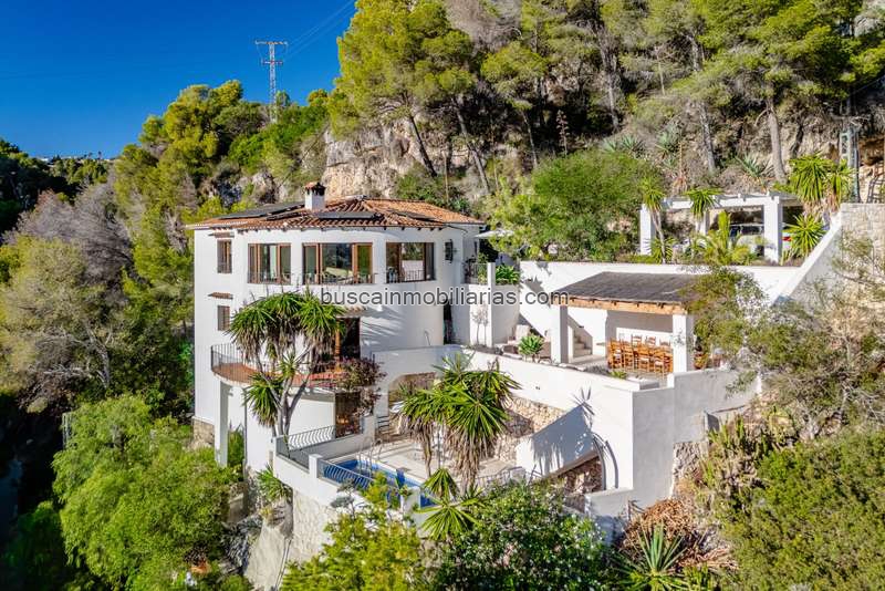 Uno de los dormitorios ofrece vistas al mar y acceso directo al área exterior con cocina de verano, mientras que otro se abre a una terraza trasera rodeada de vegetación, garantizando la máxima privacidad y una constante sensación de serenidad mediterránea.