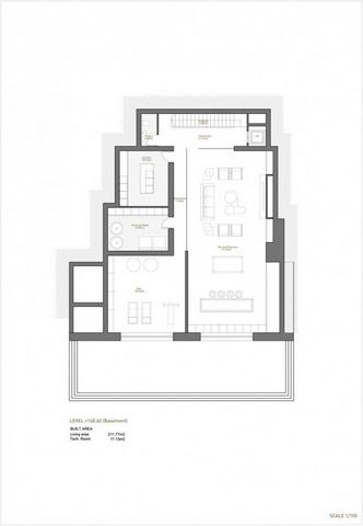 Por último, en el sótano, encontramos un gran espacio de ocio, sala de juegos, TV y bar y una sala de gimnasio. Ambas estancias están inundadas por la luz que entra por las aberturas de la piscina y por las que entra la luz tamizada por el brillo del agua.