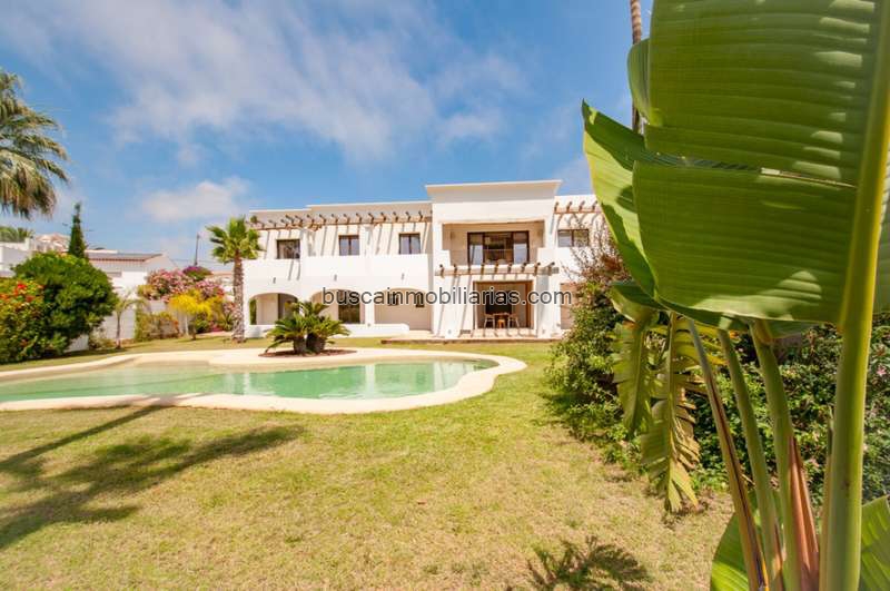 Villa ubicada en San Jaime, Benissa, cerca de campos de golf, restaurantes y tiendas. La propiedad incluye cinco dormitorios con baño en suite, múltiples terrazas y una cocina de diseño con travertino y mármol español.