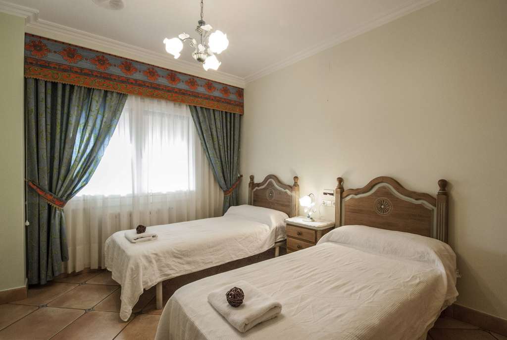 Vivienda principal, planta baja: (Acceso por un escalón) Amplia cocina totalmente equipada con fuegos a gas y acceso al salón-comedor con sofás confortables, tv tdt/sat. un amplio dormitorio con cama de matrimonio. un cuarto de baño con bañera, wc y lavabo. un amplio dormitorio con dos camas individuales, un cuarto de baño con plato ducha, wc y lavabo, un cuarto con lavadora. Planta principal: (Acceso por tres escalones) Salón-comedor con tv tdt/sat y salida a porche cubierto con vistas a la piscina. Amplia cocina totalmente equipada con fuegos a gas, un amplio dormitorio con dos camas individuales. un amplio dormitorio con cama de matrimonio,un split de aire acondicionado, y cuarto de baño en suite con bañera, wc y lavabo, un amplio dormitorio con dos camas individuales un cuarto de baño con bañera, wc y lavabo.